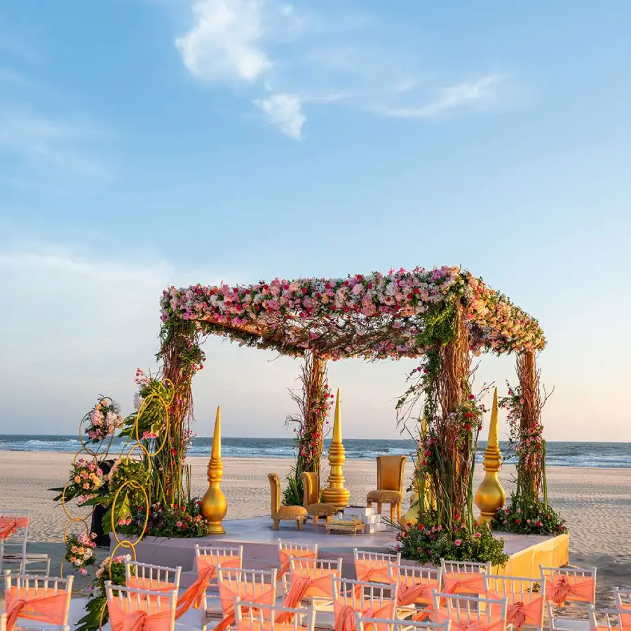 Celebrate your love at Riva Beach Resort, among the most enchanting beachside wedding venues in Goa. Sunset pheras, champagne toasts, vibrant mehendis, first dances, and starlit banquets — each moment wrapped in romance and seamless luxury, making your wedding truly unforgettable.